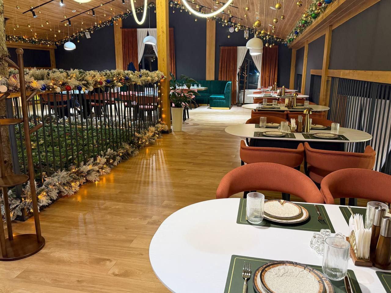 Restoran tabiiy landshaft bilan uyg‘unlashgan holda tashkil etilgan bo‘lib, kenglik va osoyishtalik hissini beradi. Bu yerda shoshilmasdan hordiq chiqarish, ochiq havoda vaqt o‘tkazish va bolalar bilan qulay dam olish mumkin.